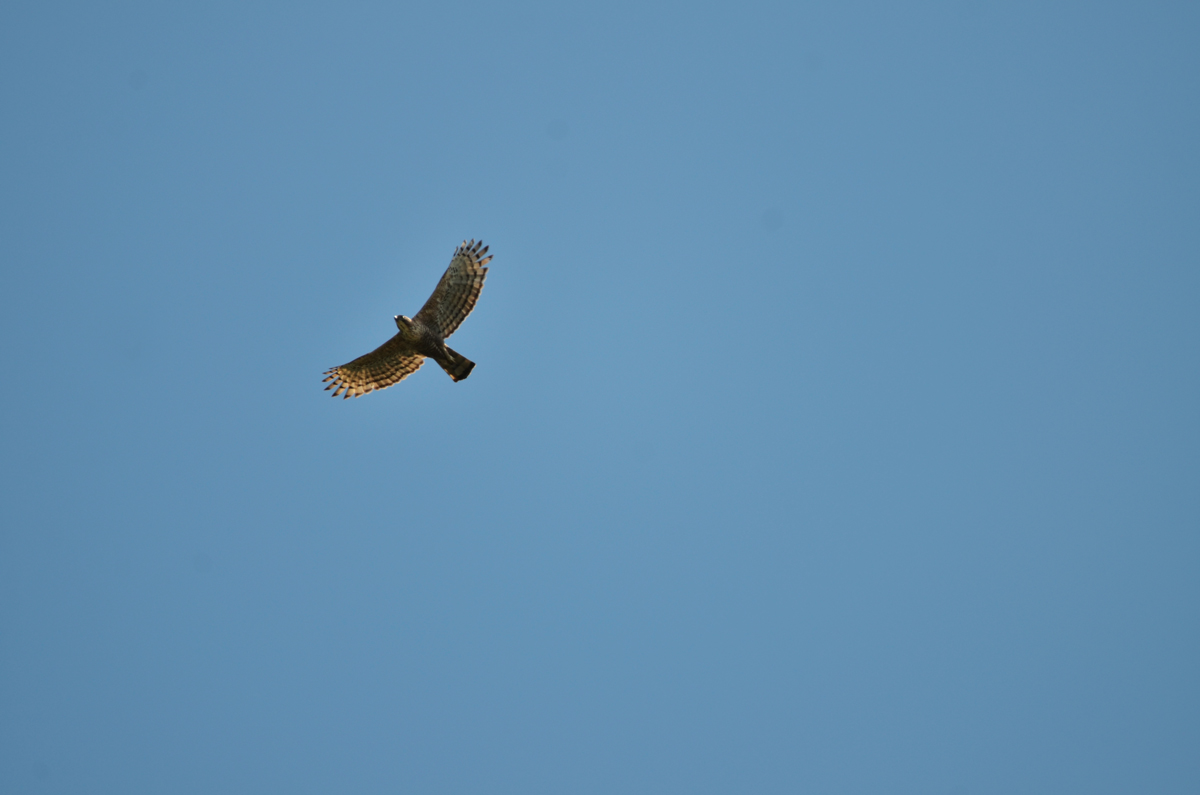 Semua mata menyasar ke segala penjuru dengan waspada, mengamati setiap gerak-gerik satwa liar di kanopi-kanopi hutan Tumpang Pitu. Walau cahaya matahari mulai terik, semuanya masih memandangi langit, bersiap memotret dengan kamera lensa jarak jauh setiap polah burung elang dan rangkong yang terbang melintas. Beberapa saat kemudian, ada pekik gembira tertahan. Bagus Susesono berhasil mengabadikan burung elang yang sedang duduk bertengger di pohon kering di sekitar Pit B-East PT Bumi Suksesindo.