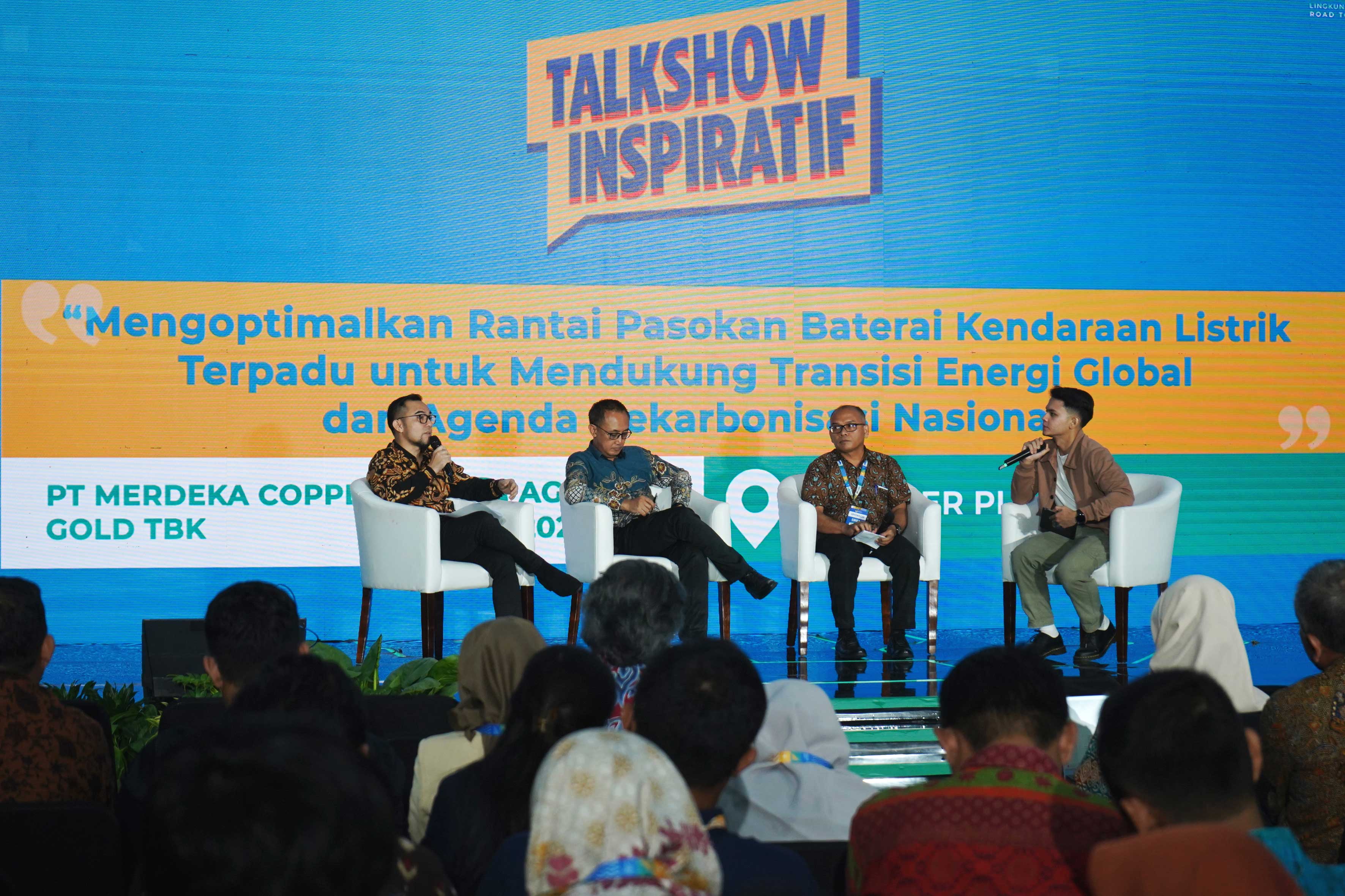 Pada hari kedua festival, tiga pembicara dari Grup Merdeka mengisi talkshow berjudul “Mengoptimalkan Rantai Pasokan Baterai Kendaraan Listrik Terpadu untuk Mendukung Transisi Energi Global dan Agenda Dekarbonisasi Nasional.”