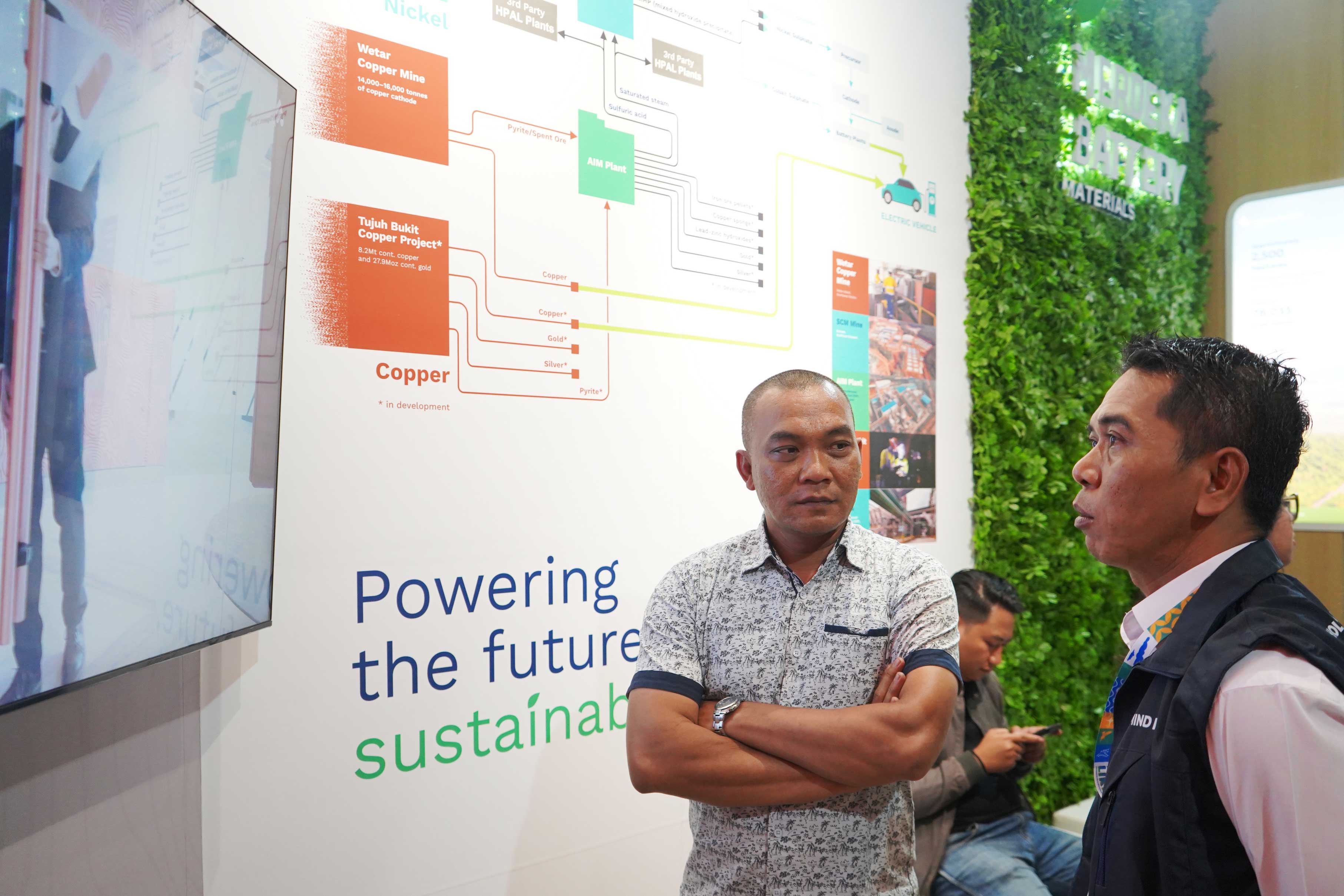 Eben Ezer Sirait, Environmental Manager, menutup sesi dengan membahas praktik manajemen lingkungan Grup Merdeka yang inovatif dan berkelanjutan. Ia menjelaskan bagaimana Merdeka mengadopsi pendekatan circularity dalam bisnisnya, dengan memanfaatkan sisa ore dari Tambang Tembaga Wetar sebagai bahan baku untuk Pabrik AIM. Pabrik ini antara lain menghasilkan asam sulfat dan uap jenuh yang akan digunakan di pabrik HPAL. Pemanfaatan produk sampingan dari pengolahan bijih di Tambang Tembaga Wetar merupakan salah satu bentuk konservasi mineral—sekaligus konservasi lingkungan, mengingat sisa ore yang semula menjadi beban lingkungan akibat mengandung asam dapat diolah kembali menjadi bahan baku bernilai ekonomi tinggi.