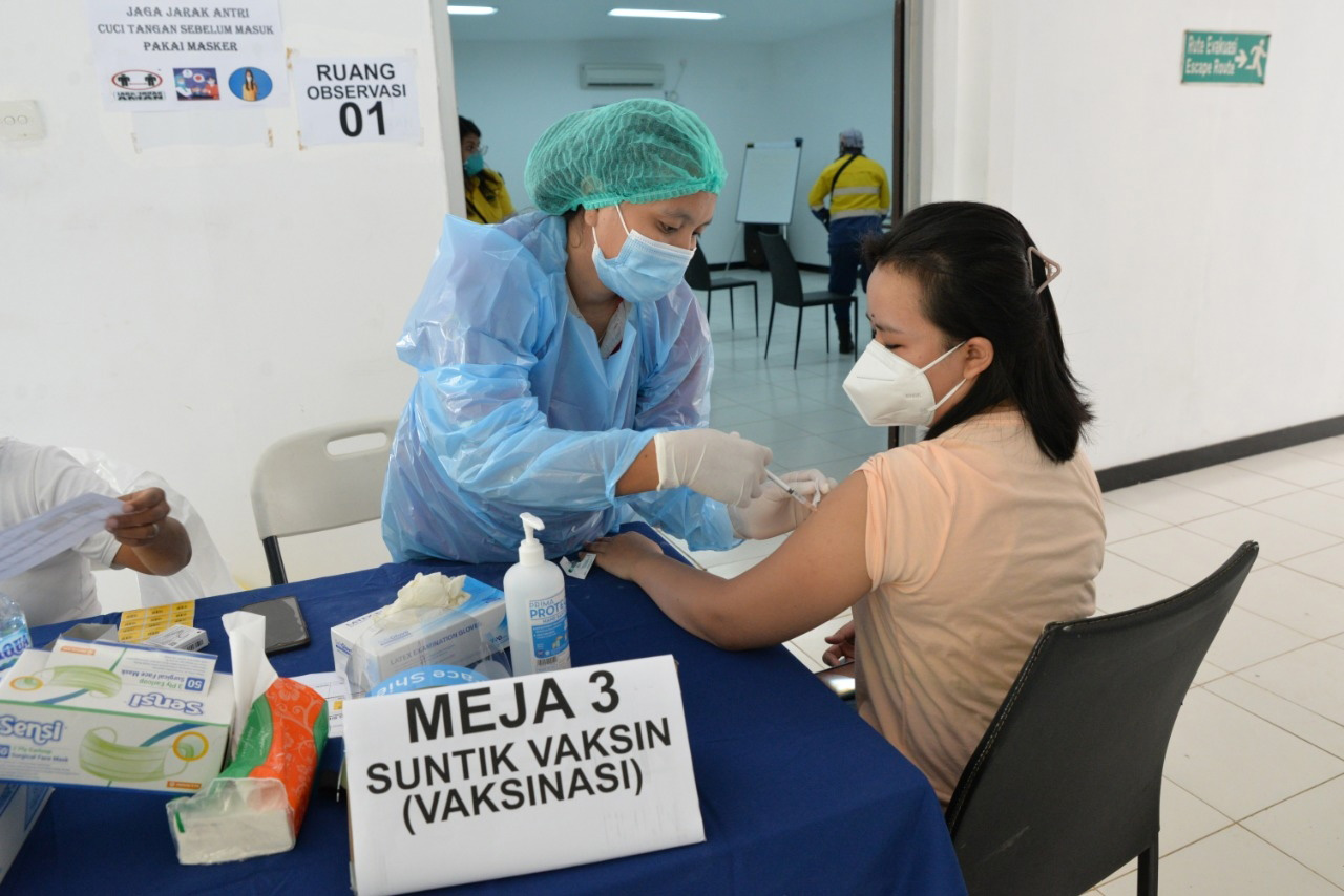 Sementara itu, BKP-BTR telah melakukan vaksinasi dosis pertama selama sepekan sejak 16 Juli 2021 kepada seluruh karyawan dan kontraktor. Vaksinasi tersebut dilakukan oleh tim paramedis Klinik BKP-BTR, bekerja sama dengan Rumah Sakit Siloam Kupang dan Puskesmas Lurang. Menurut Hotmonang F. Sitanggang, Senior Manager Commercial & Human Resources BKP-BTR, dan dr. Agus Juanda di Klinik BKP-BTR, pada 29 Juli 2021, semua vaksin Gotong Royong dari Merdeka untuk 800 orang sudah digunakan—bahkan belum mencukupi karena total penerima vaksin di BKP-BTR adalah 1.548 orang, yang terdiri atas karyawan dan kontraktor di site. Vaksinasi dosis kedua akan dilakukan pada 6 Agustus 2021. Saat ini, BKP-BTR juga mendapat tambahan 42 dosis vaksin dari yang tidak digunakan di kantor pusat Merdeka di Jakarta.