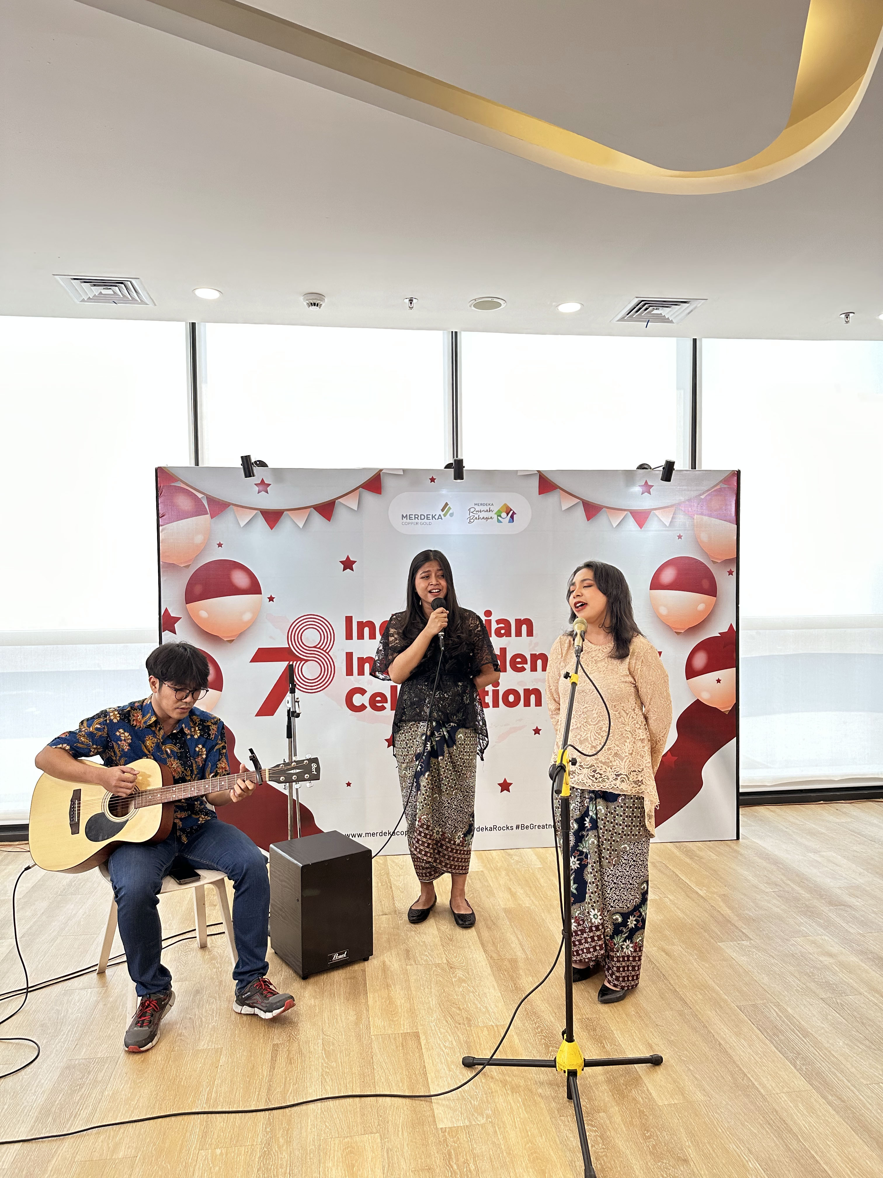 Di kantor pusat Jakarta, sejak seminggu sebelum hari perayaan, berbagai kegiatan digelar untuk karyawan PT Merdeka Copper Gold Tbk, dari lomba kostum adat, makan piza, hingga pertandingan pingpong, sepak bola melalui PlayStation, dan bermacam game online. Ada pula lomba ajang bakat Merdeka yang juga diikuti oleh karyawan dari berbagai anak perusahaan Merdeka yang tersebar di tiga pulau di Indonesia.