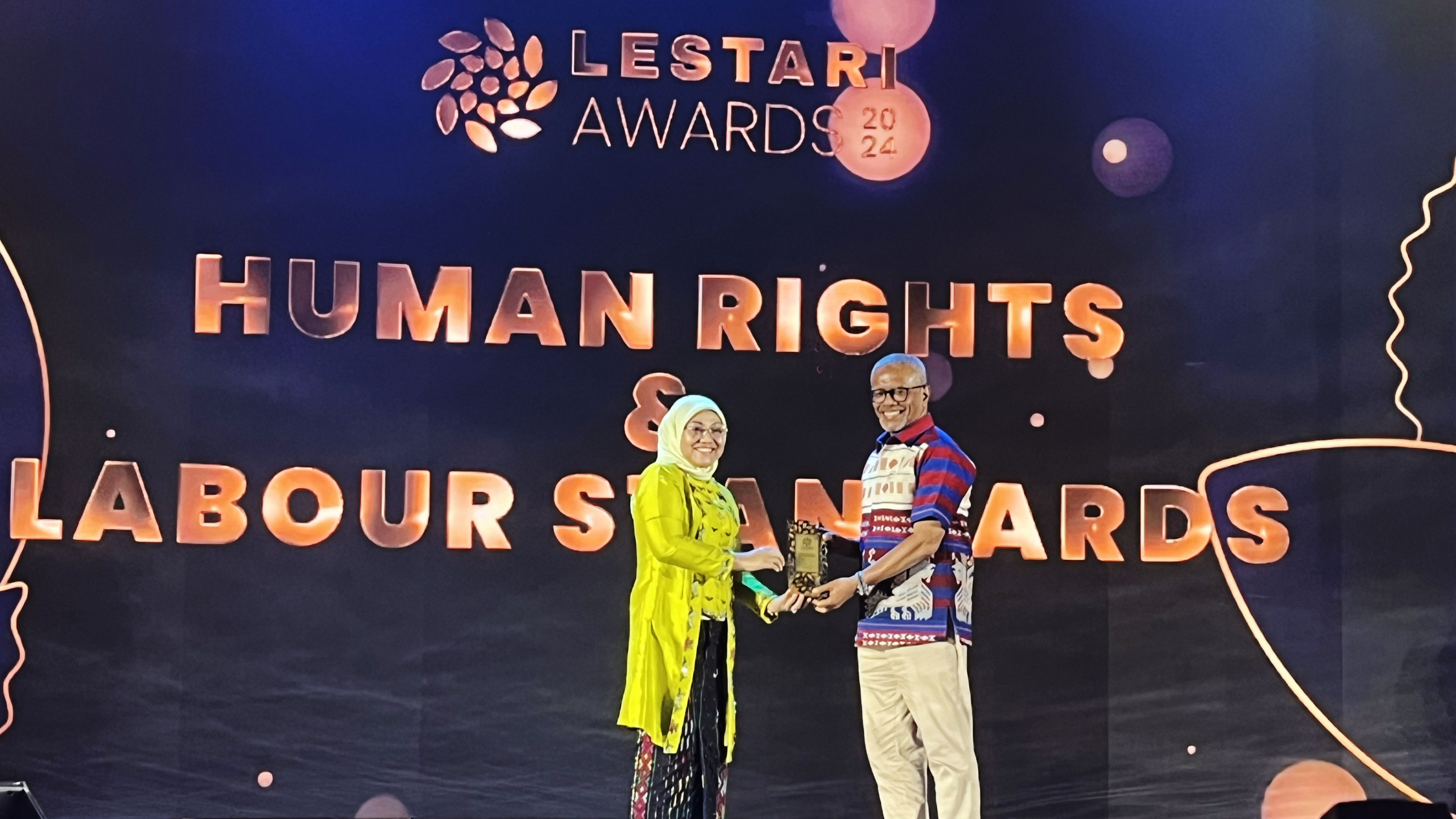 Penghargaan ini diserahkan oleh Menteri Ketenagakerjaan, Ida Fauziyah, kepada Boyke P. Abidin, Chief of External Affairs PT Merdeka Copper Gold Tbk, di Hotel Raffles, Jakarta pada 21 Agustus 2024, dalam puncak acara Lestari Summit 2024.